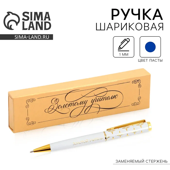 Ручка в подарочном футляре «Золотому учителю», металл, синяя паста, пишущий узел 1.0 мм — Характеристики
