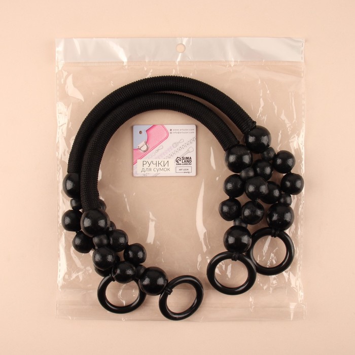 Ручки для сумки, 2 шт., вощёный шнур/дерево, 44×4 см, чёрные — Характеристики