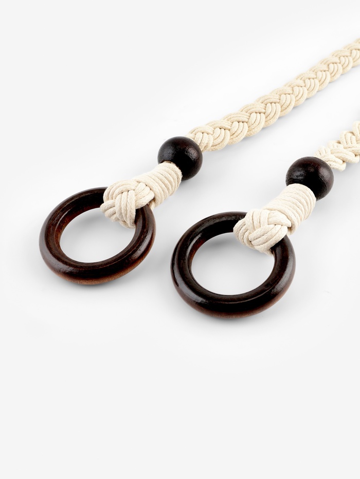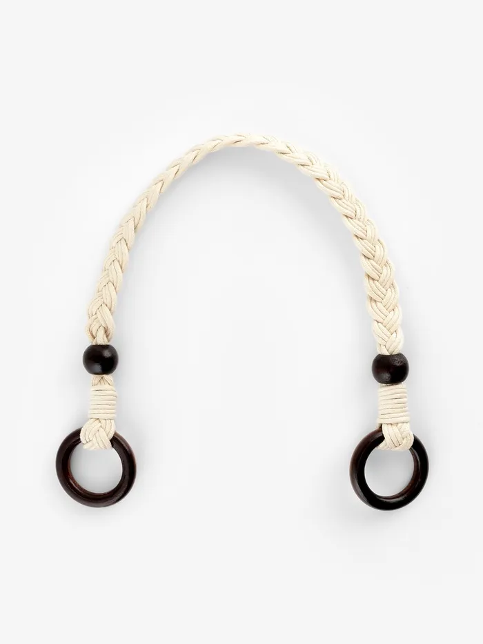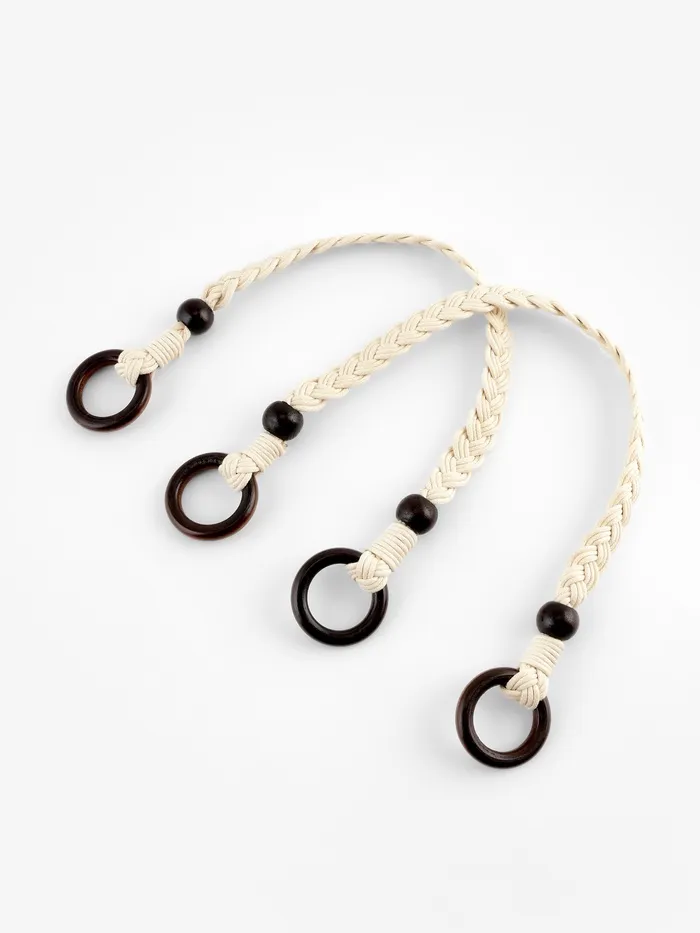 Пара бежевых ручек для сумки с вощёным шнуром и деревянными элементами — это практичные аксессуары для обновления или украшения сумок. Их длина 48 см и ширина 2 см позволяют удобно крепить их к различным моделям сумок, создавая комфортный и стильный образ. Эти ручки подходят для тех, кто ценит качество и эстетику в деталях.