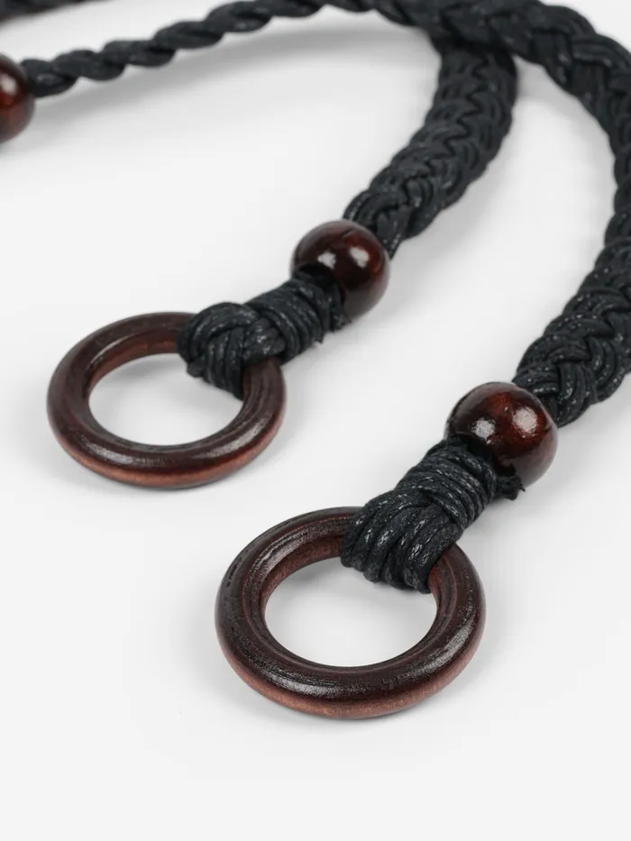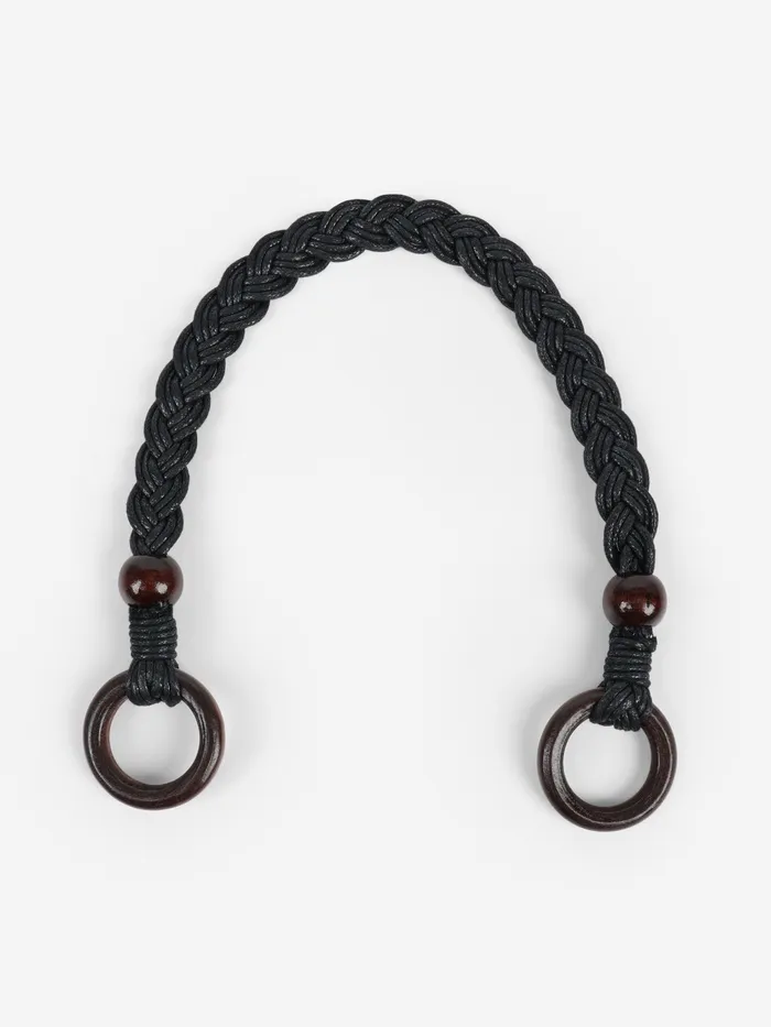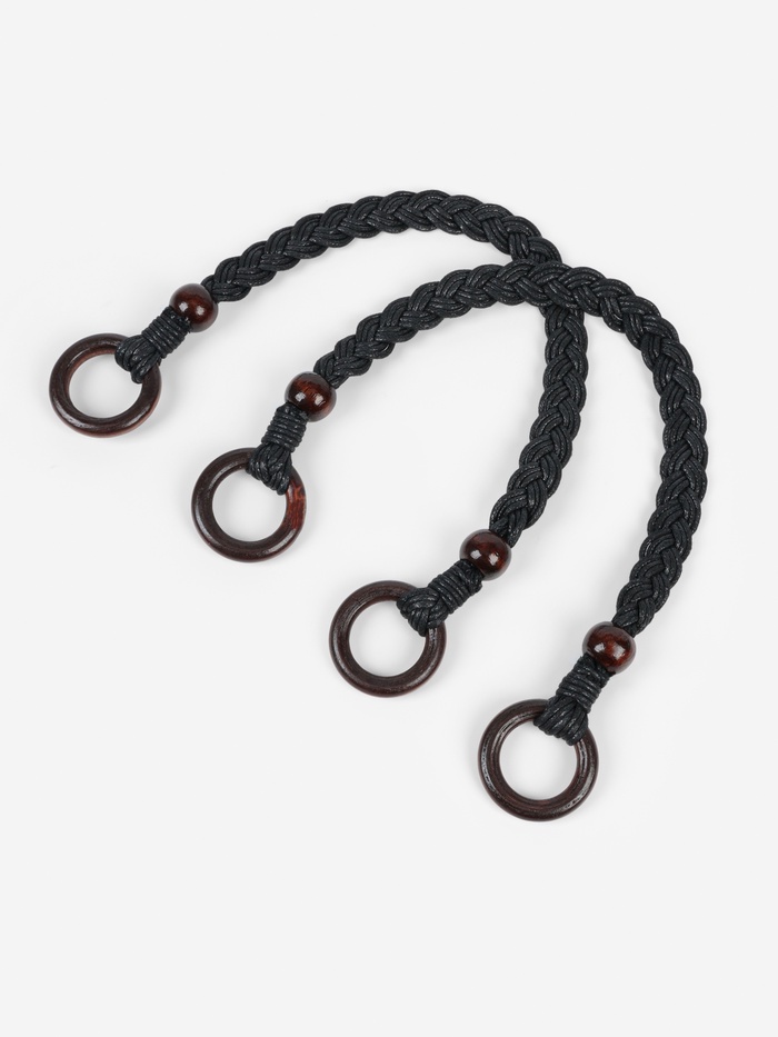 Черные ручки для сумки с вощёным шнуром и деревянными элементами — это практичные аксессуары для обновления или украшения сумок и шопперов. Их длина 48 см и ширина 2 см обеспечивают комфортное ношение и универсальность при креплении. Эти ручки подходят для тех, кто ценит качество, стиль и удобство в деталях.