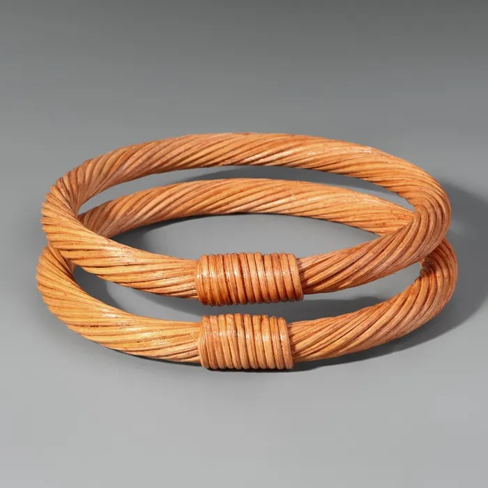 Плетёные деревянные ручки для сумки — это экологичный и стильный элемент, который добавляет аксессуару текстуры и индивидуальности. Светло-коричневый оттенок подчёркивает естественную красоту дерева и легко сочетается с разными материалами: хлопком, кожей, льном. Они подходят как для повседневных, так и для авторских моделей в стиле крафт или натурализм.