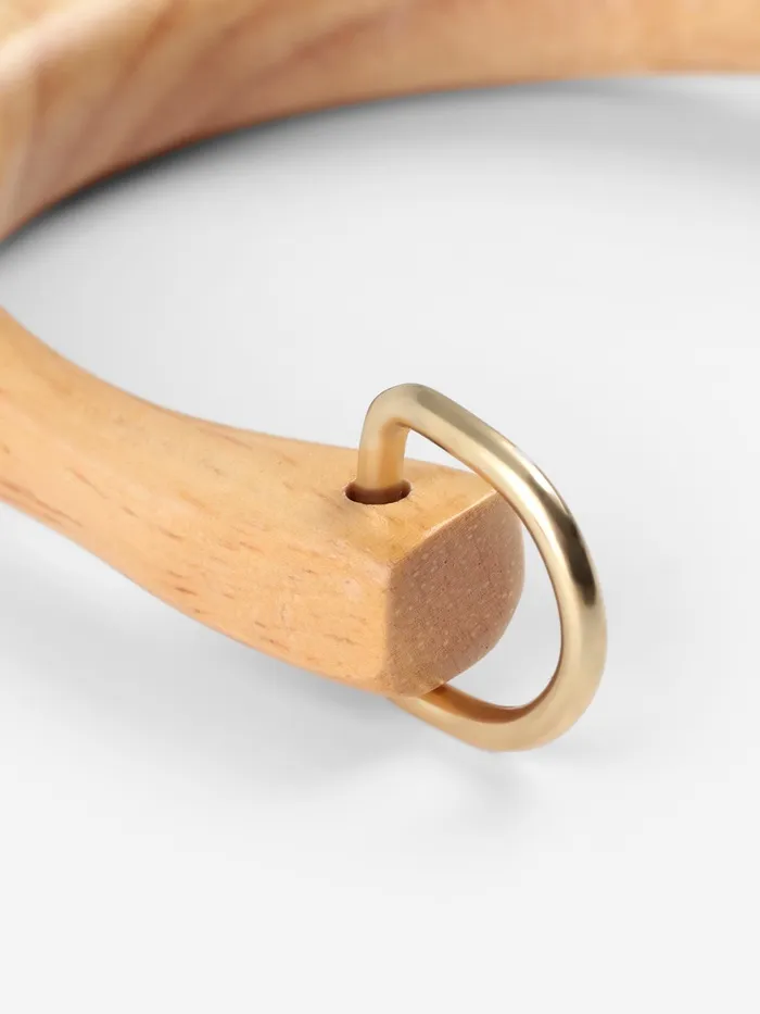 Полукольца из золотистого металла не только усиливают крепление, но и создают контраст с теплотой дерева. Это практичный выбор для тех, кто создаёт сумки своими руками и хочет добавить изделию «живую» текстуру и светлый акцент в дизайне.