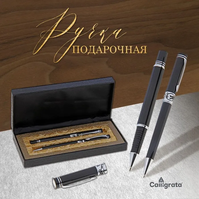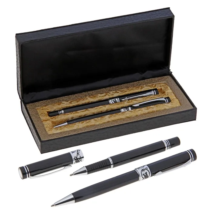 Ручки подарочные, 2 шт.: капиллярная, шариковая поворотная, в кожзам футляре, VIP, чёрные — Характеристики