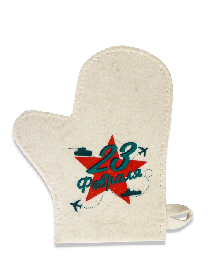 Банная рукавица «23 февраля» из шерсти и полиэфира — защитный аксессуар для работы в парной. Она предохраняет руки от жара, облегчая приготовление веника и безопасное обращение с горячими предметами.