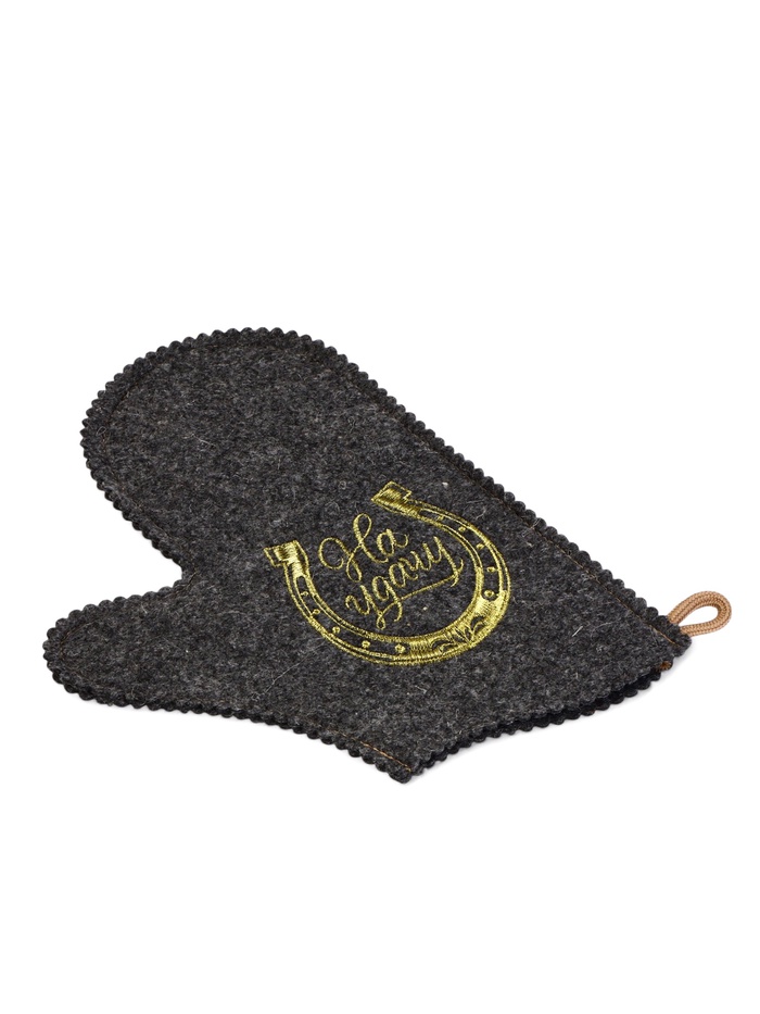 Банная рукавица «На удачу» тёмная с вышивкой — многофункциональный аксессуар для парной. Комбинированный материал подходит для разных процедур: от защиты рук до ухода за кожей тела.