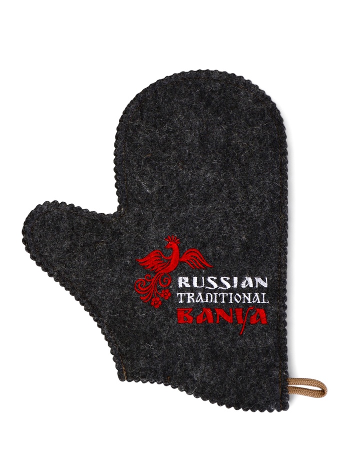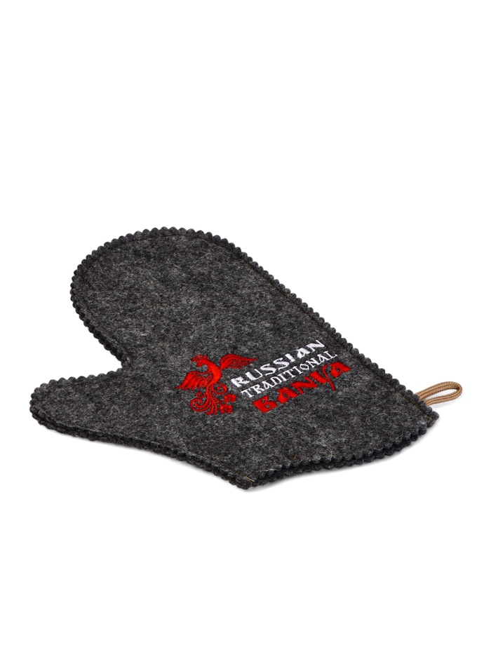 Банная рукавица «Русские традиции» серая с вышивкой — классический аксессуар для парной. Сочетание шерсти и полиэфира создаёт прочный материал для разных банных процедур.