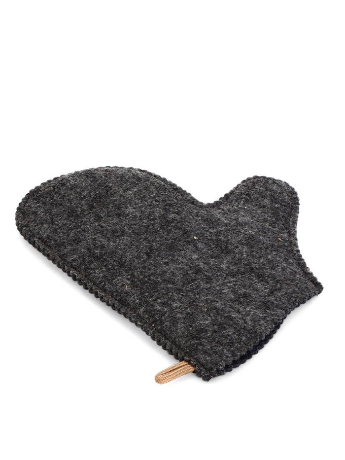 - Гигиеничность использования: рукавица быстро сохнет после банных процедур. Серая цветовая гамма практична в ежедневной эксплуатации.