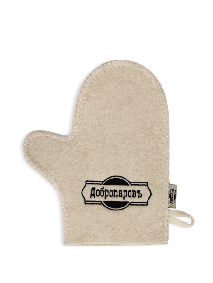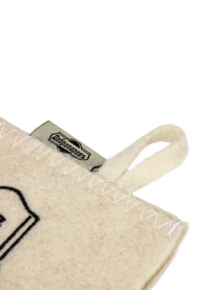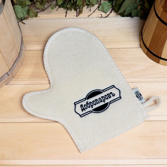 Рукавица для бани и сауны, с вышивкой, белая, «Добропаровъ» — Характеристики