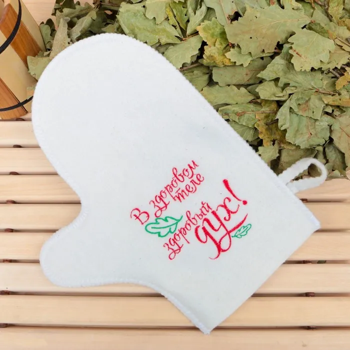 Рукавица для бани «В здоровом теле здоровый дух» от Добропаровъ - это не только практичный, но и стильный аксессуар для любителей парных процедур. Изготовлена из войлока, с содержанием шерсти 30%, она обеспечивает надежную защиту рук от высоких температур и горячего пара. Светлый цвет и вышивка придают ей изысканный вид, который украсит любой банный ритуал. Подходит для регулярного использования благодаря прочности материалов и качественной обработке.