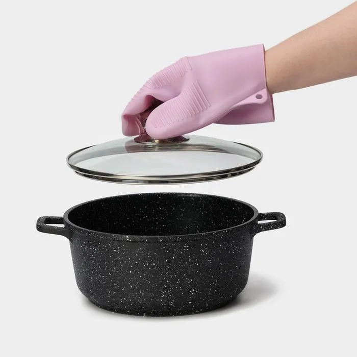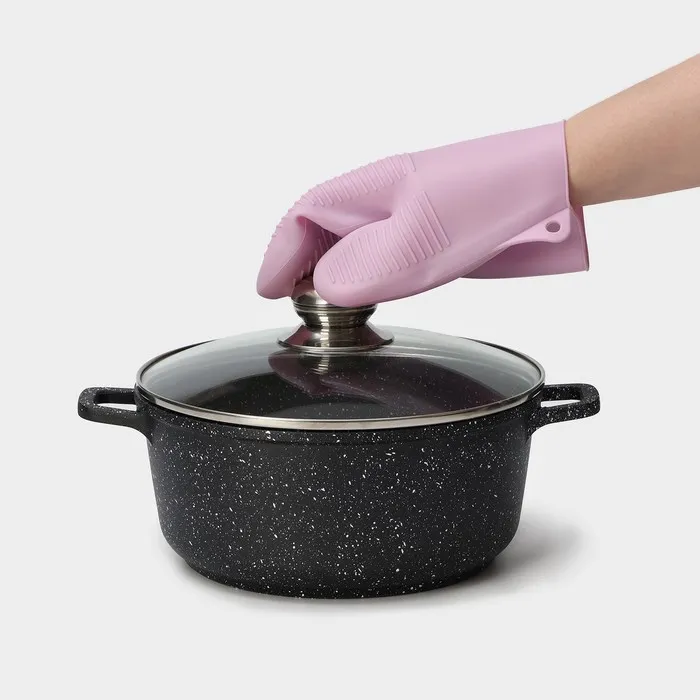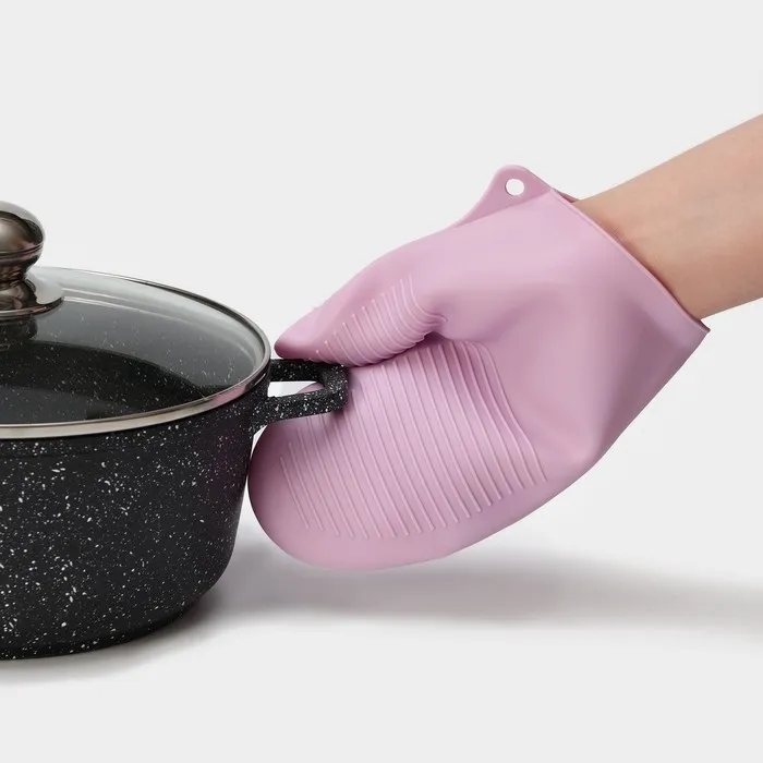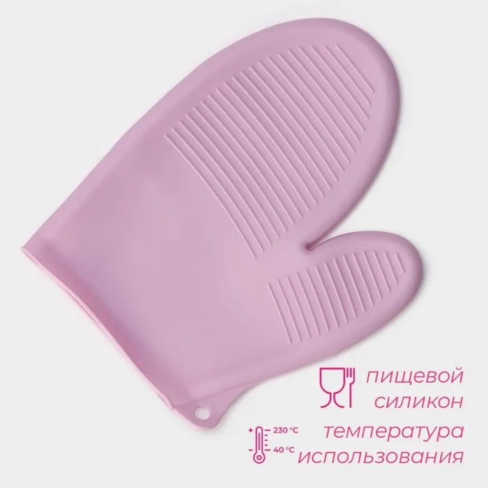 Рукавица для горячего Доляна «Ребрис», силикон, 22×17 см, розовая — Характеристики