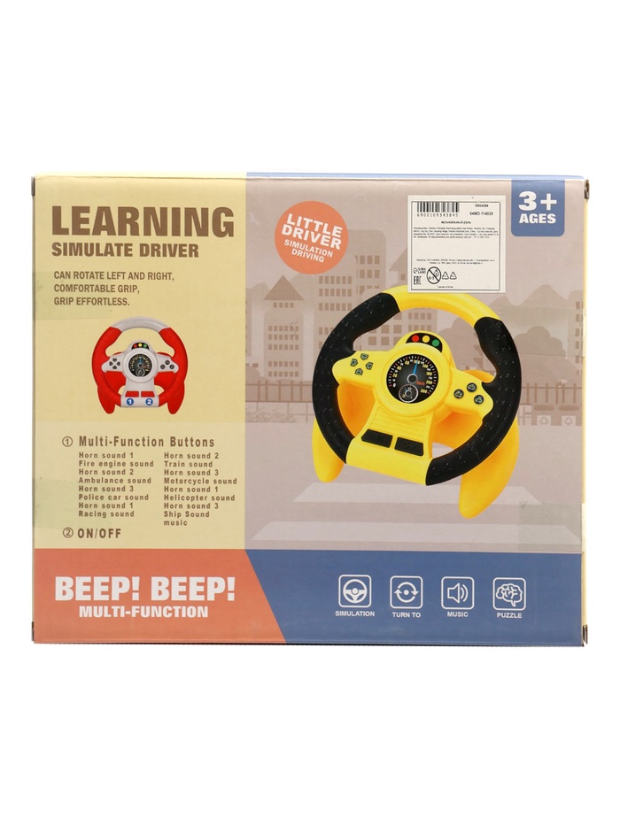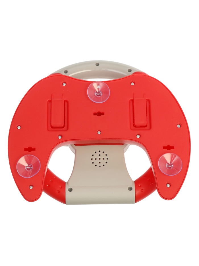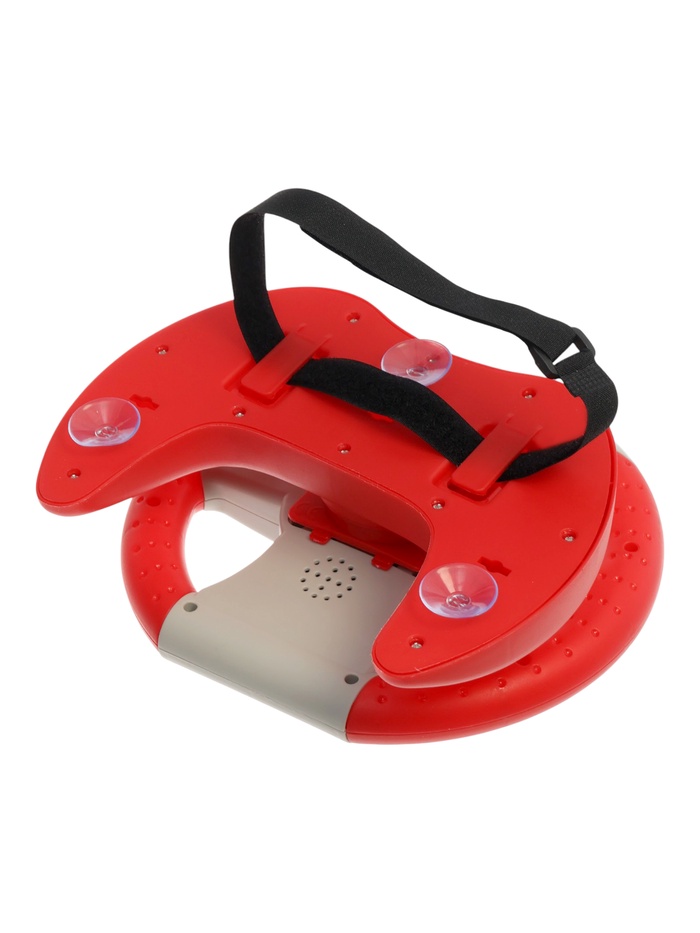 Руль фиксируется на ровной поверхности с помощью присосок или крепится ремешком, что позволяет использовать игрушку в разных условиях.