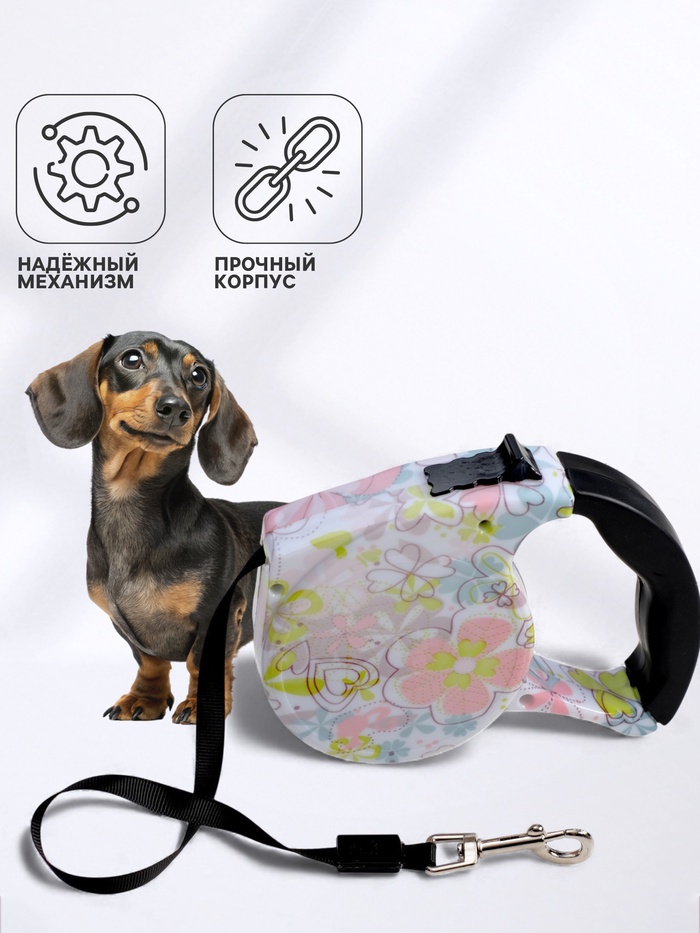 Классическая рулетка на 5 метров - базовая амуниция для собак средних размеров. Удобная ручка с выемками для пальцев. Не боится морозов. Достаточно легкая.