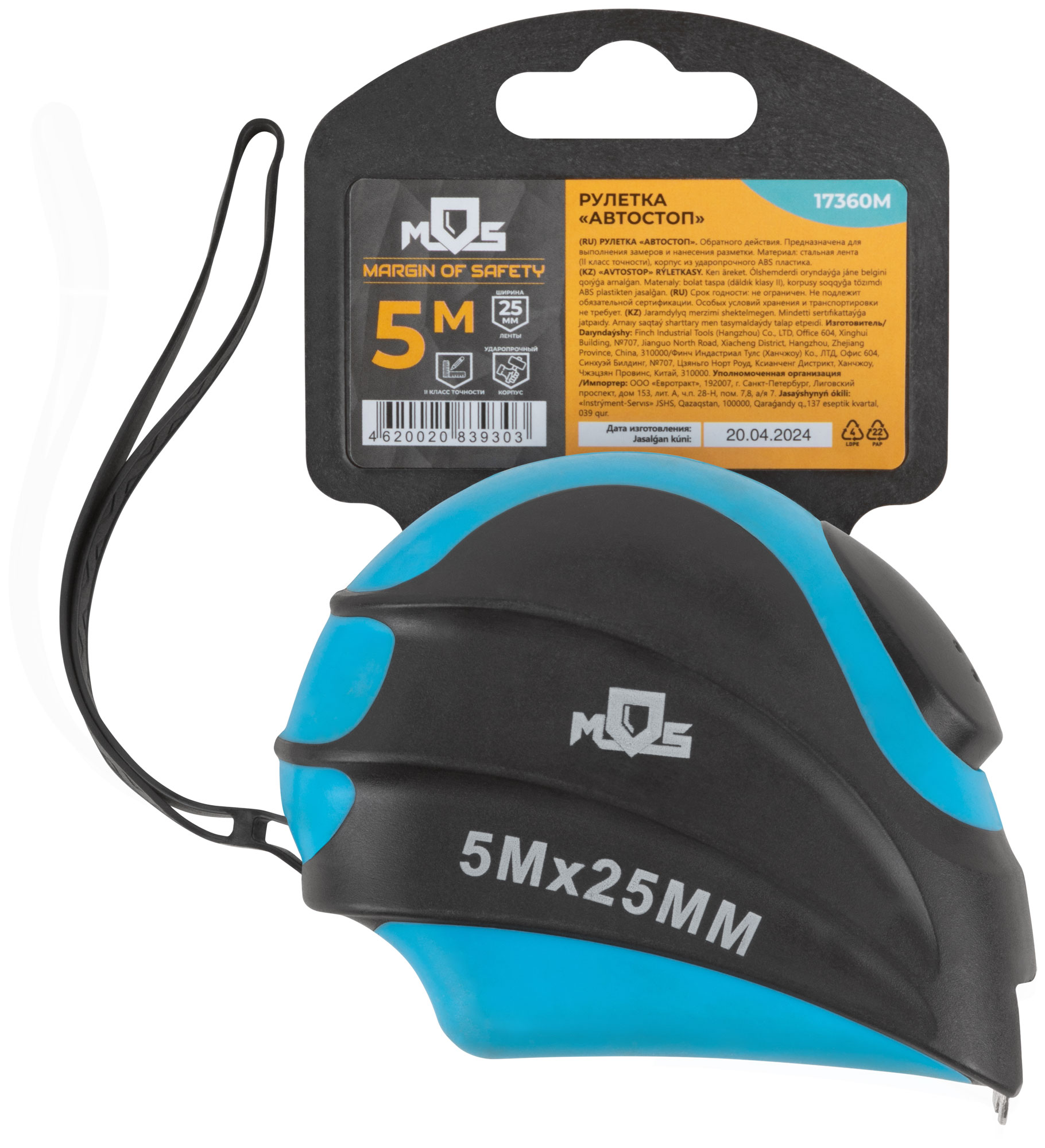Выберите рулетку "Автостоп" 5 м x 25 мм от MOS, чтобы обеспечить точные и надежные измерения в любой ситуации.