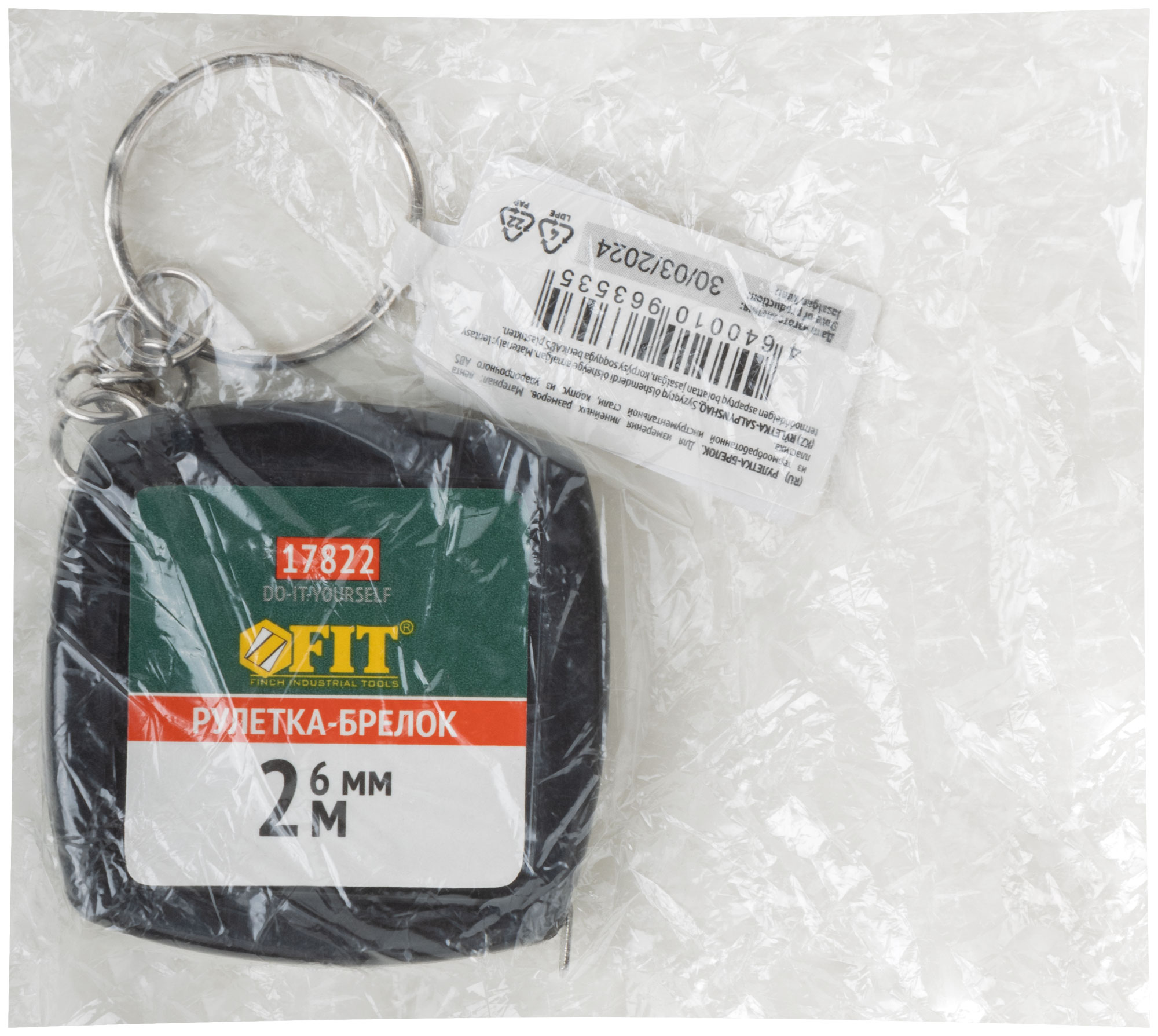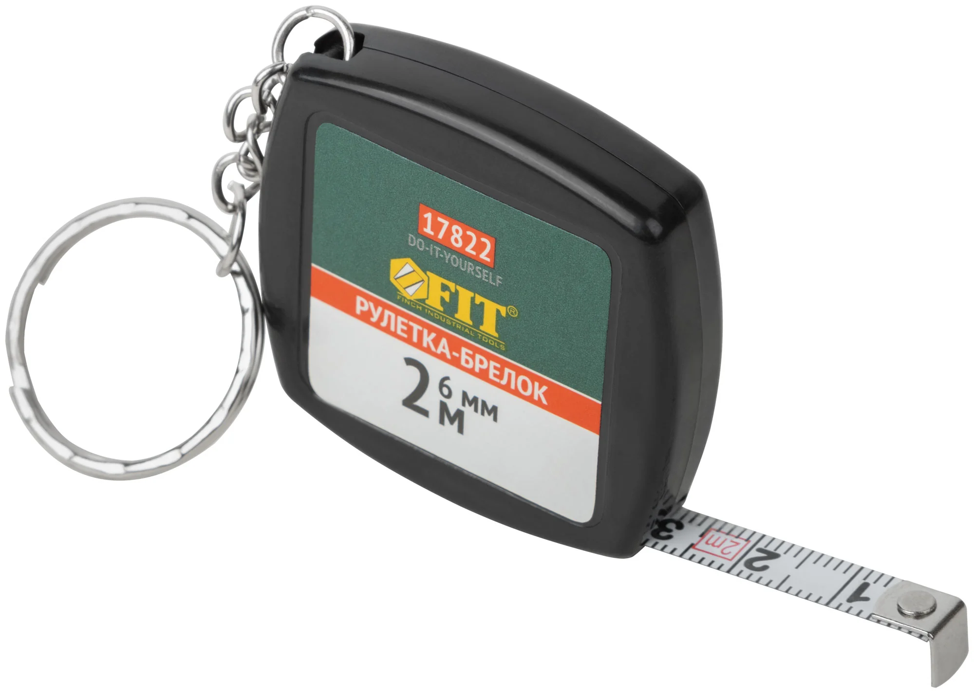 Рулетка-брелок от FIT длиной 2 метра идеальна для быстрого измерения небольших объектов на стройке или в бытовых условиях. Легко помещается в карман или на ключи, всегда под рукой в нужный момент.