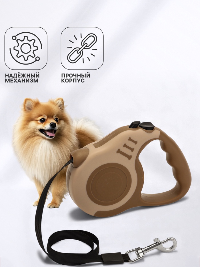 Рулетка для собак «Зарница», 3 м, до 11.5 кг, бежевая, коричневая — Характеристики