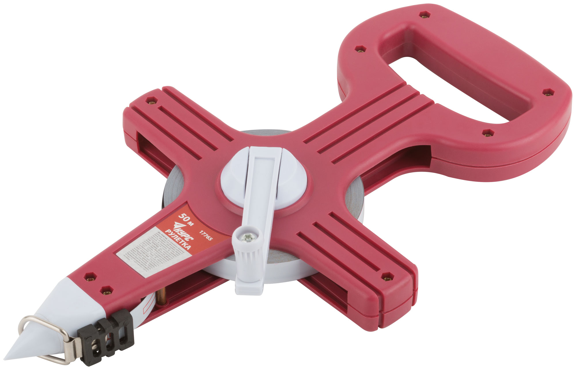 Рулетка геодезическая, стальная лента, красный открытый пластиковый корпус 50 м