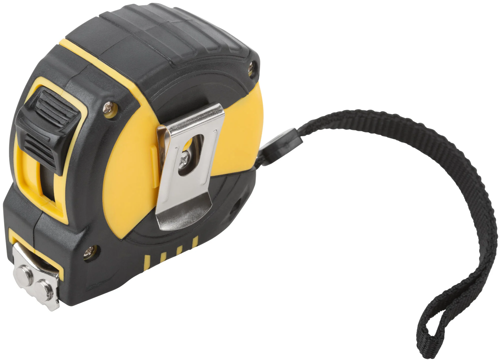 Эта рулетка оснащена калиброванной лентой класса II с нейлоновым покрытием, что обеспечивает долговечность и устойчивость к износу. Прорезиненный корпус из ABS пластика защищает инструмент от ударов и падений, а двойной стопор гарантирует надёжную фиксацию ленты.