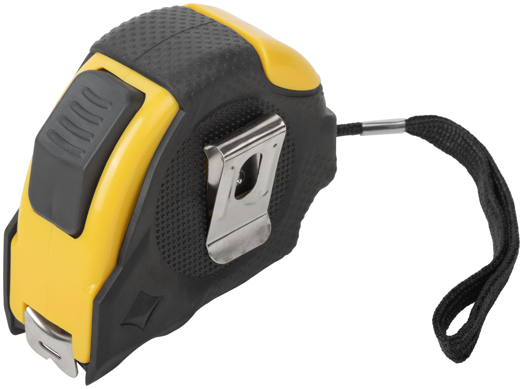 Корпус рулетки выполнен из прорезиненного ABS-пластика, что обеспечивает устойчивость к ударам и комфортное удержание в руке. Лента изготовлена из инструментальной стали, что гарантирует её долговечность и точность измерений.