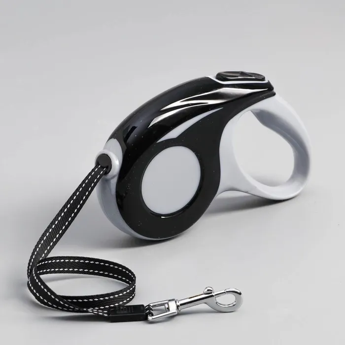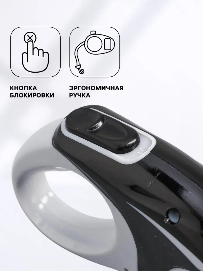 Лента, которая находится внутри корпуса, достаточно широка и прочная, что позволяет контролировать движения вашей собаки. Рулетка имеет стоп-механизма, поэтому приостановить движение ленты можно с помощью кнопки на ручке.