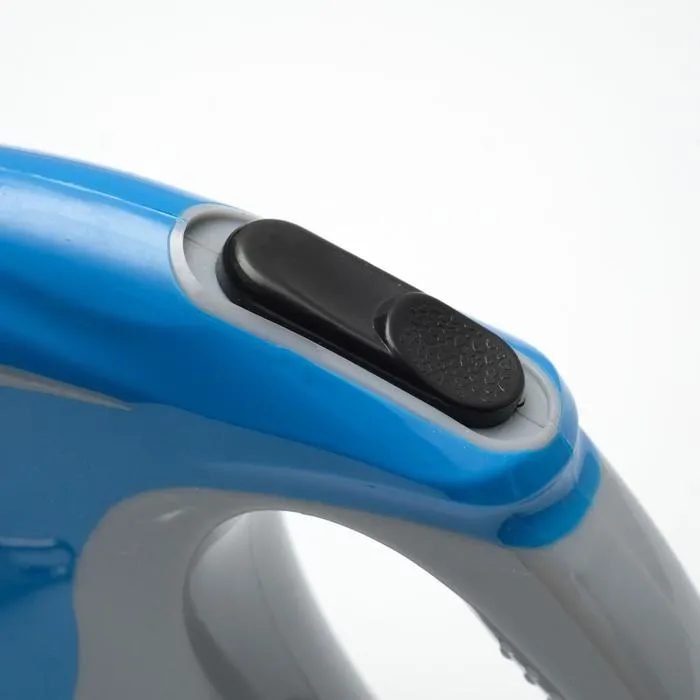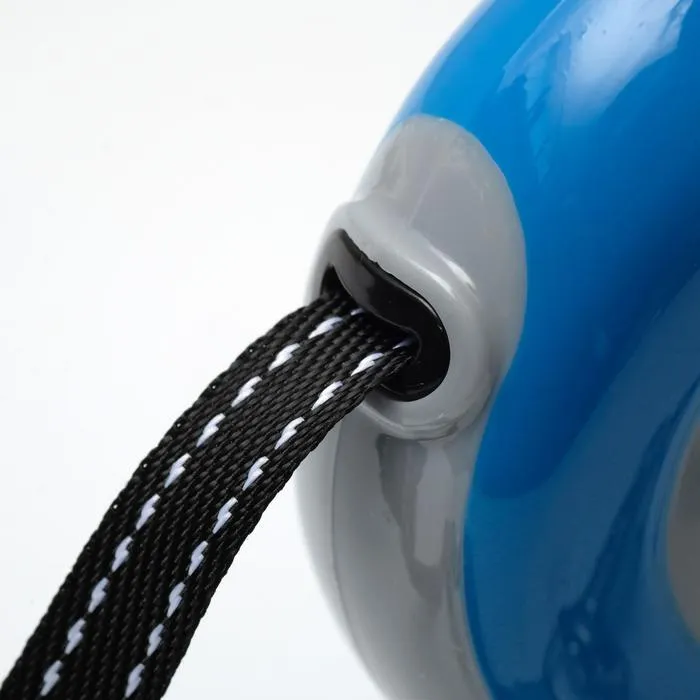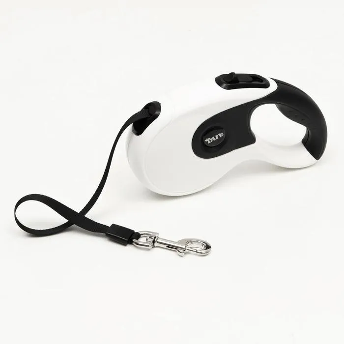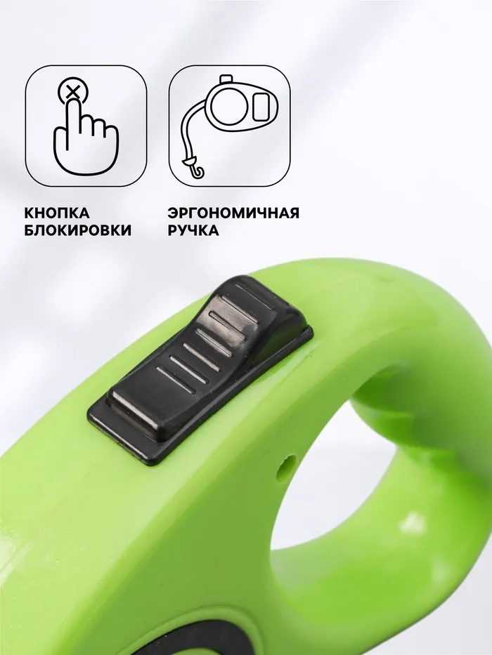 Лента, которая находится внутри корпуса, достаточно широка и прочная, что позволяет контролировать движения вашей собаки. Рулетка имеет стоп-механизма, поэтому приостановить движение ленты можно с помощью кнопки на ручке.