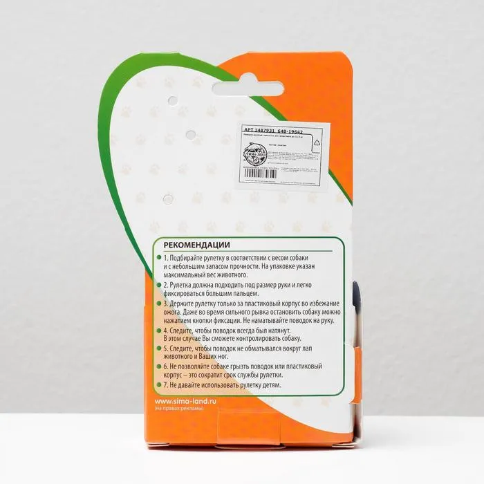 Рулетка "Молния" - это надежный и долговечный инструмент для прогулок с вашей собакой. Он имеет длину 3 метра, что оптимально для использования в городских условиях и на улицах с большим потоком людей. Рулетка рассчитана на собак весом до 11,5 кг.