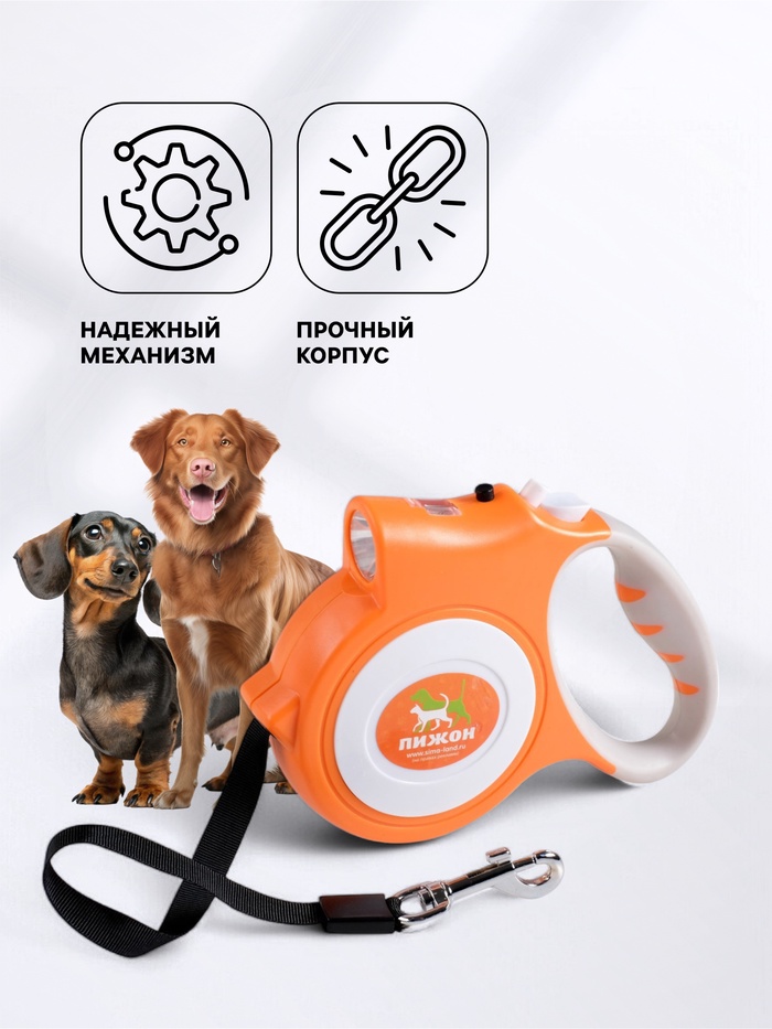 Лента, которая находится внутри корпуса, достаточно широка и прочная позволяет контролировать движения вашей собаки.