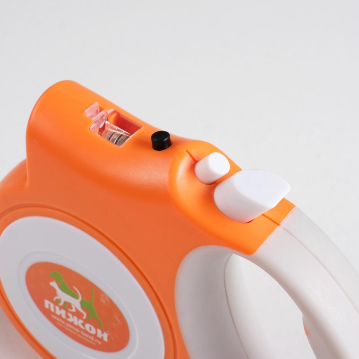 Ручка изготовлена из качественного материала, который имеет прорезиненное покрытие, которое обеспечивает надежный захват при прогулке. Кроме того, рулетка "Пижон" оснащена фонариком, который позволит вам выгуливать своего питомца даже в темное время суток. Фонарик имеет яркий свет и работает от батареек, которые уже входят в комплект.