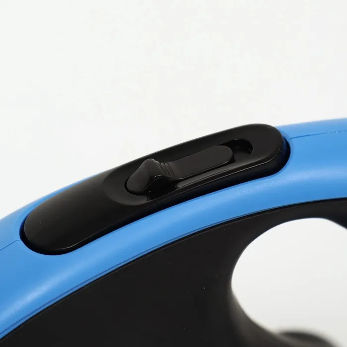 Рулетка оснащена кнопкой блокировки, которая позволяет фиксировать длину поводка на нужном участке.