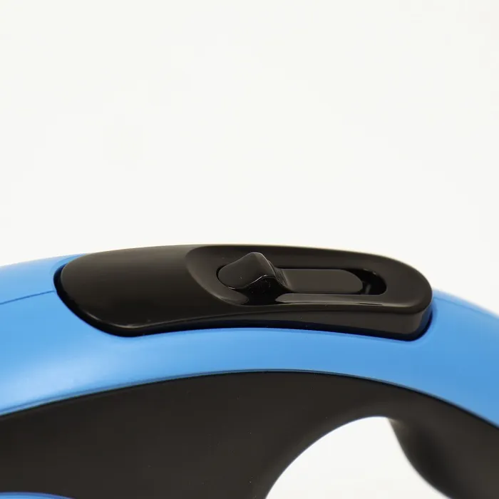 Рулетка оснащена кнопкой блокировки, которая позволяет фиксировать длину поводка на нужном участке.