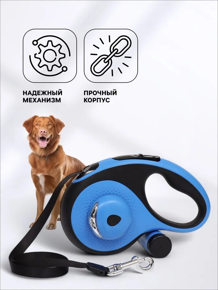 Контейнер под пакеты, встроенный в рулетку, позволяет легко и быстро убирать за своим питомцем.