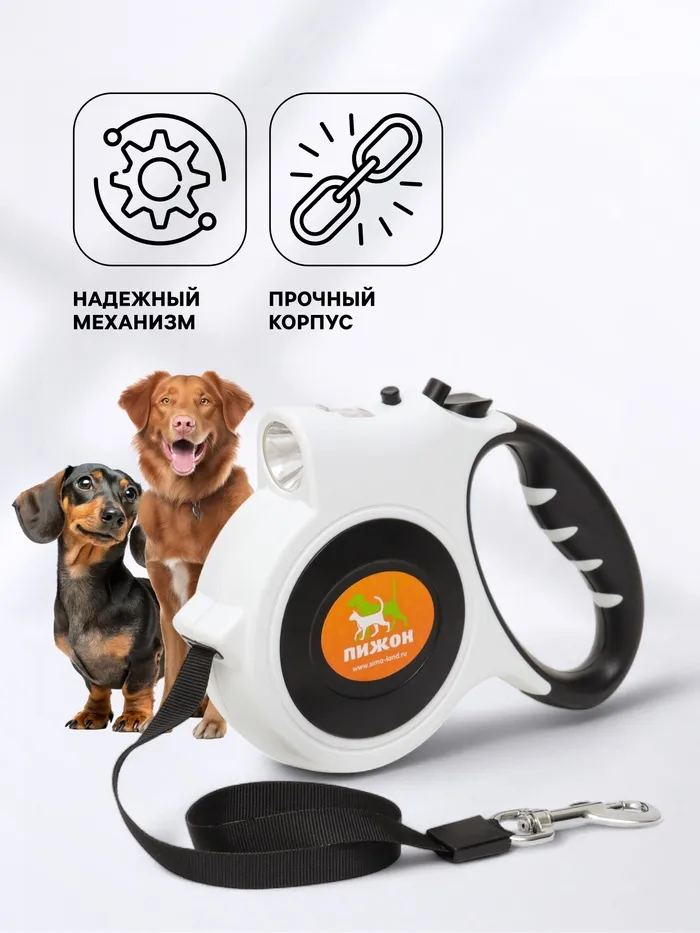 Рулетка "Пижон" с фонариком - это уникальный инструмент, который позволяет вам выгуливать питомца в ночное время. Рулетка имеет длину 5 метров, что позволяет вашему питомцу свободно двигаться и наслаждаться прогулкой. Она подходит для собак весом до 35 кг.