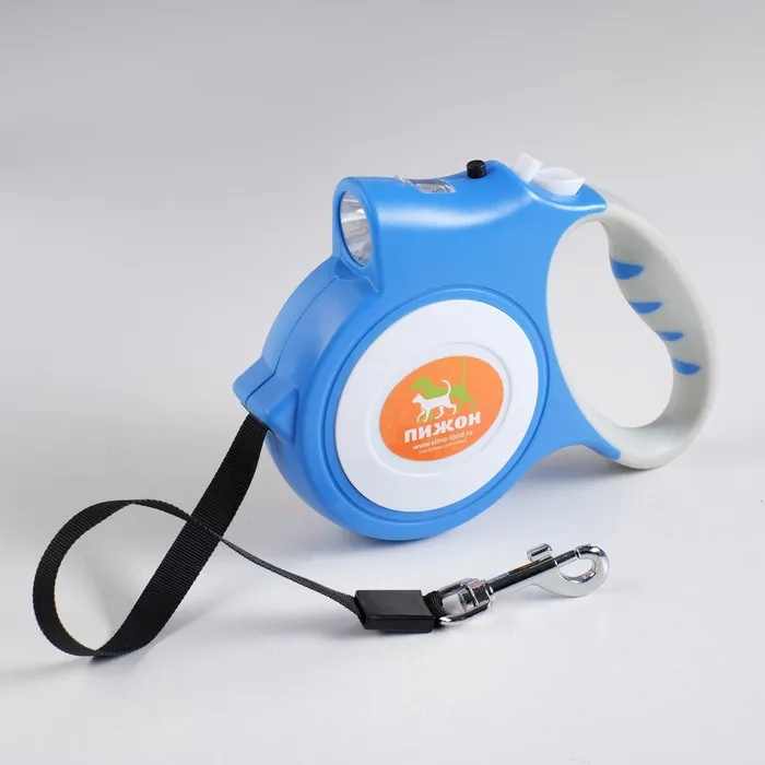 Ручка изготовлена из качественного материала, который имеет прорезиненное покрытие, которое обеспечивает надежный захват при прогулке. Кроме того, рулетка "Пижон" оснащена фонариком, который позволит вам выгуливать своего питомца даже в темное время суток. Фонарик имеет яркий свет и работает от батареек, которые уже входят в комплект.