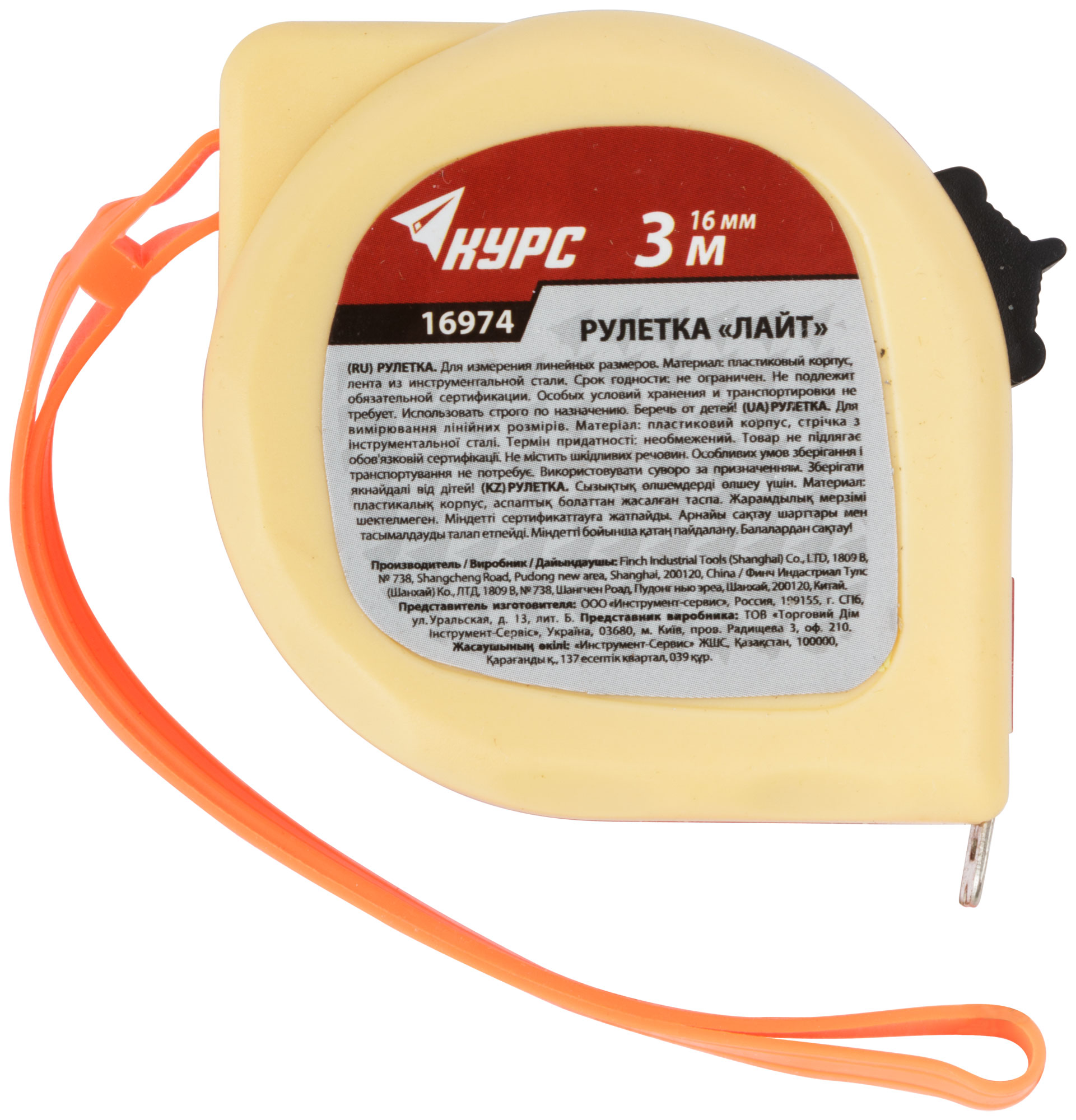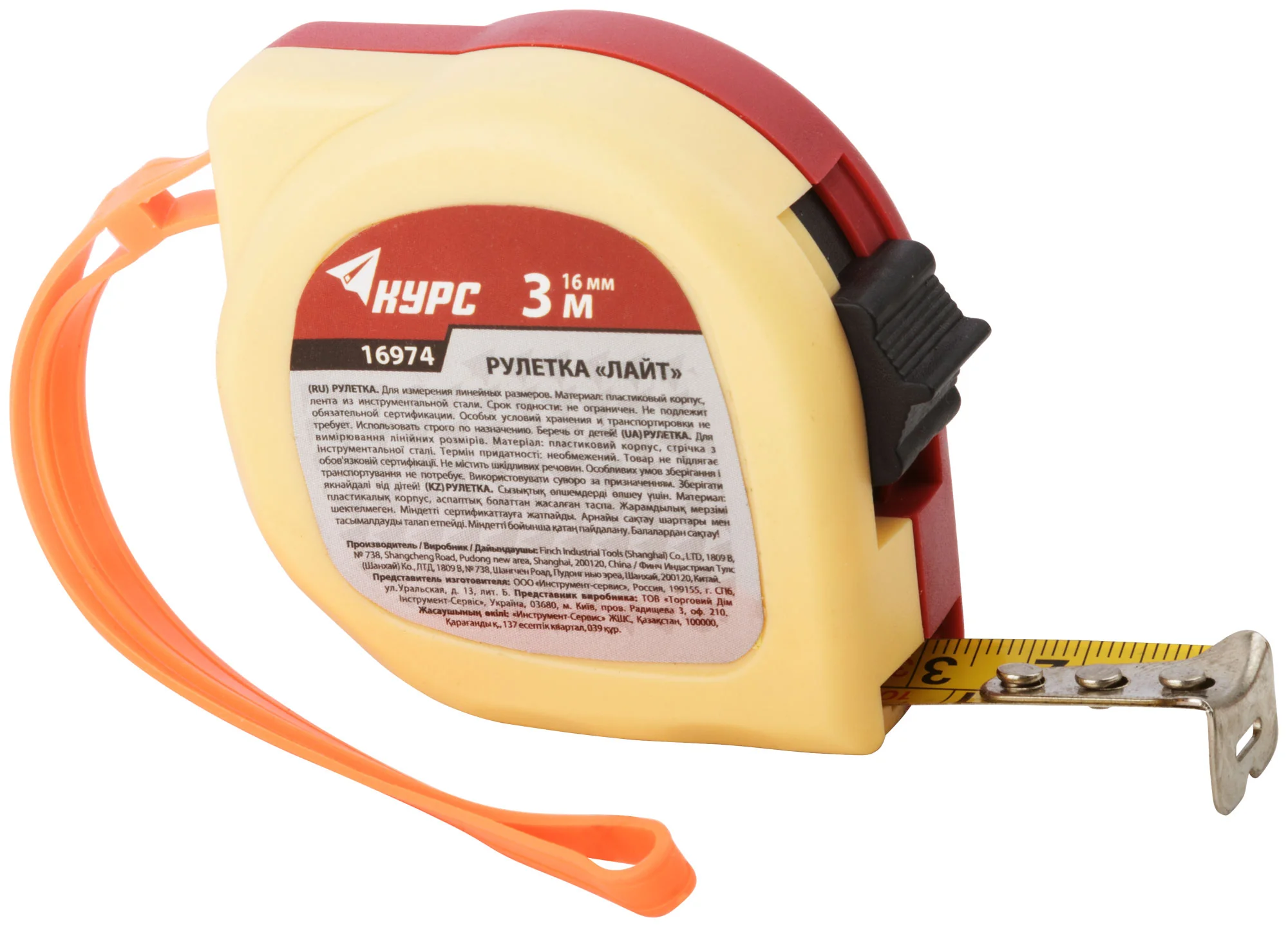 Рулетка "Лайт" от бренда "КУРС" — это сочетание простоты и надежности. Легкий вес всего 70 грамм позволит носить ее с собой в кармане или на поясе, не создавая дискомфорта.