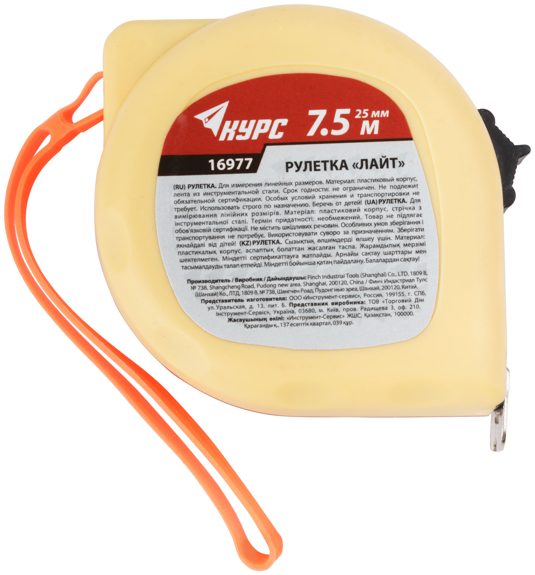 Рулетка пластиковая "Лайт" 7,5 м x 25 мм для точных измерений