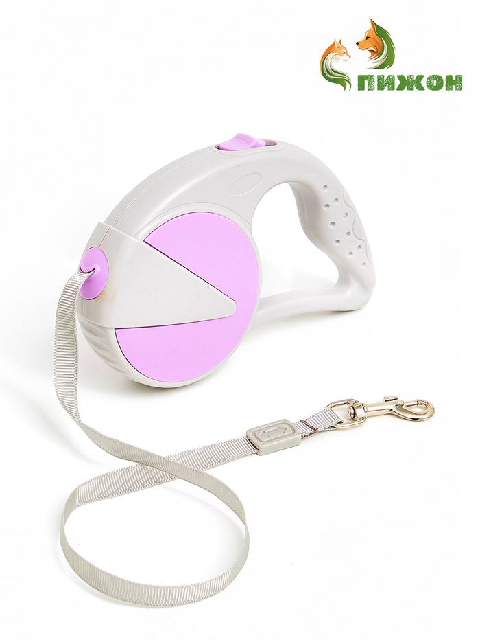 Рулетка - поводок для собак, лента 3 м, пластик, серая, сиреневая — Характеристики
