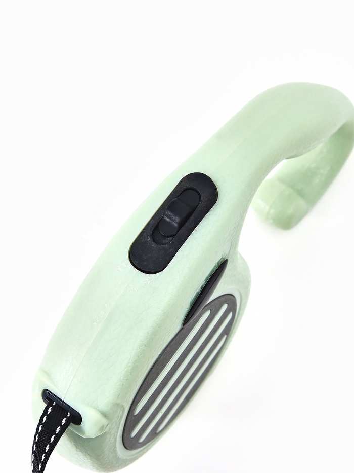 • Плавное торможение и возврат: механизм равномерно сматывает ленту без рывков. Хозяин может быстро укоротить поводок в любой момент — например, при встрече с другими собаками или на проезжей части.