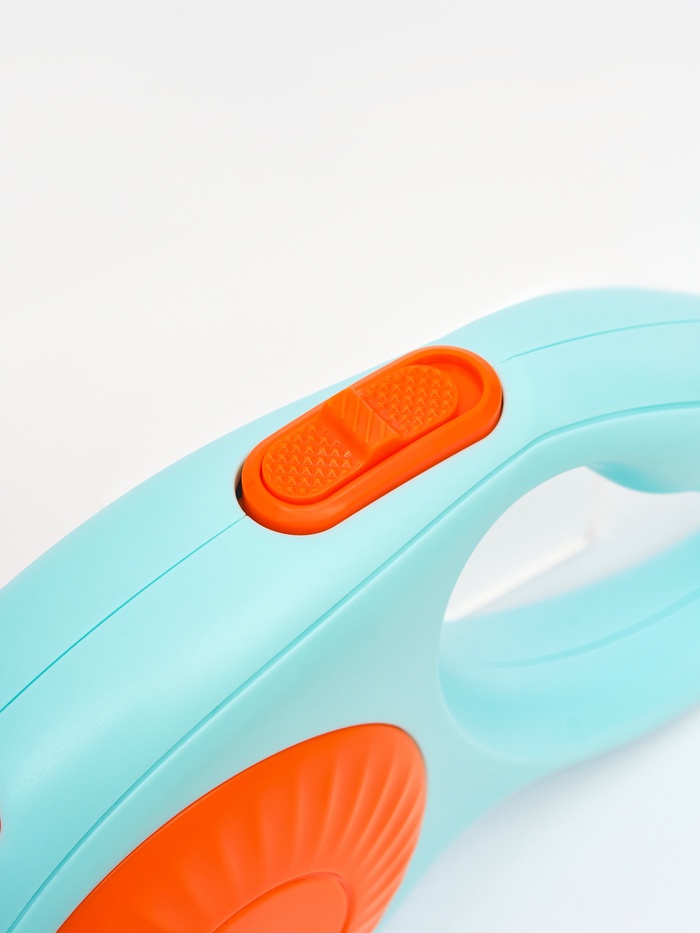 - Система втягивания без рывков: Поводок автоматически сматывает ленту, не заедая и не резко дёргая руку. Механизм работает мягко, даже если собака резко меняет направление.