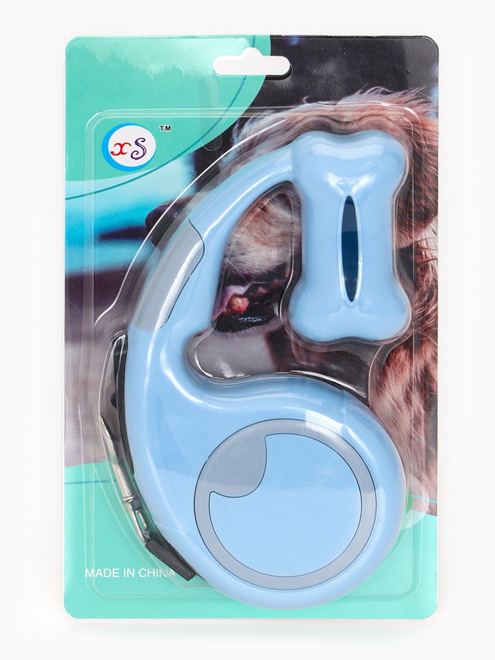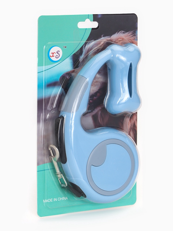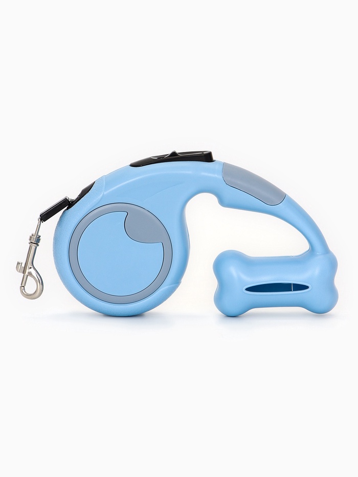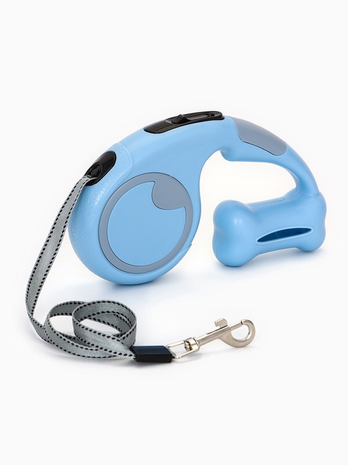 Рулетка - поводок «Косточка», 3 м, с контейнером для пакетов, пластик, голубая — Характеристики