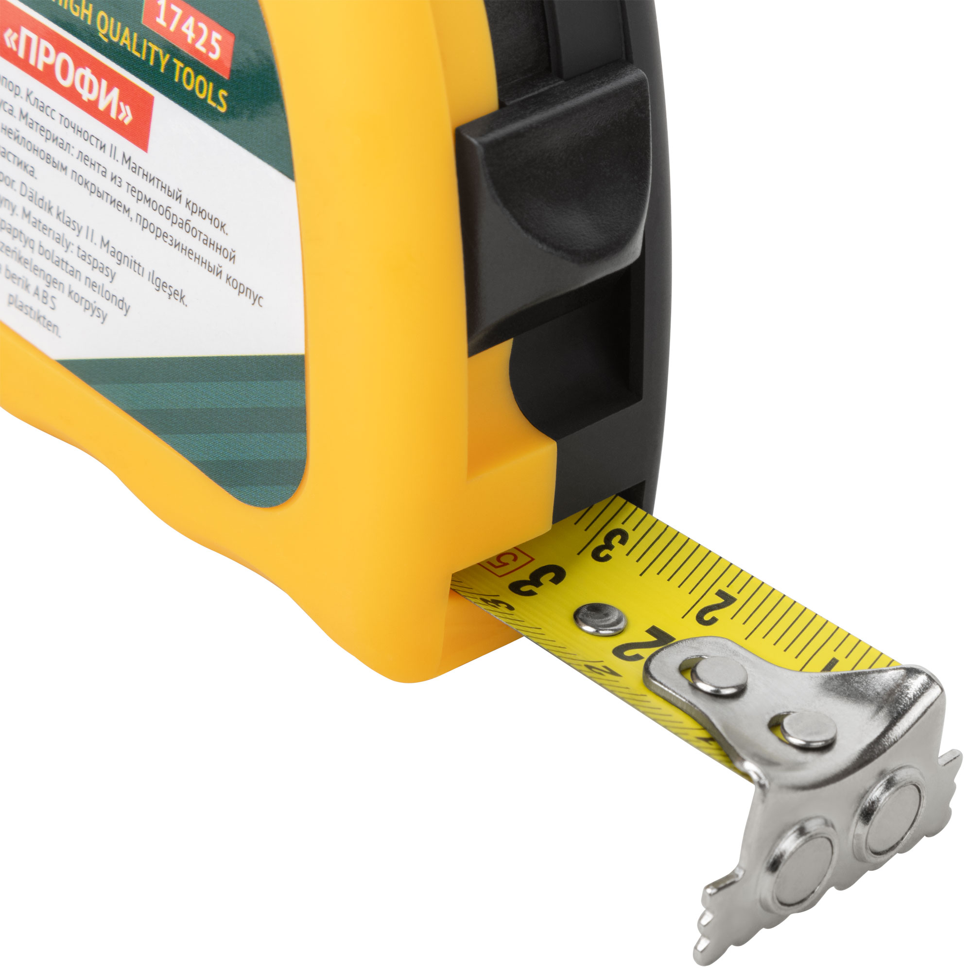 Преимущества рулетки FIT 17425 включают удобное использование даже в сложных условиях благодаря продуманной конструкции и высокому качеству материалов. Компактные размеры и легкий вес делают ее подходящей для ношения в кармане или на инструментальном поясе.