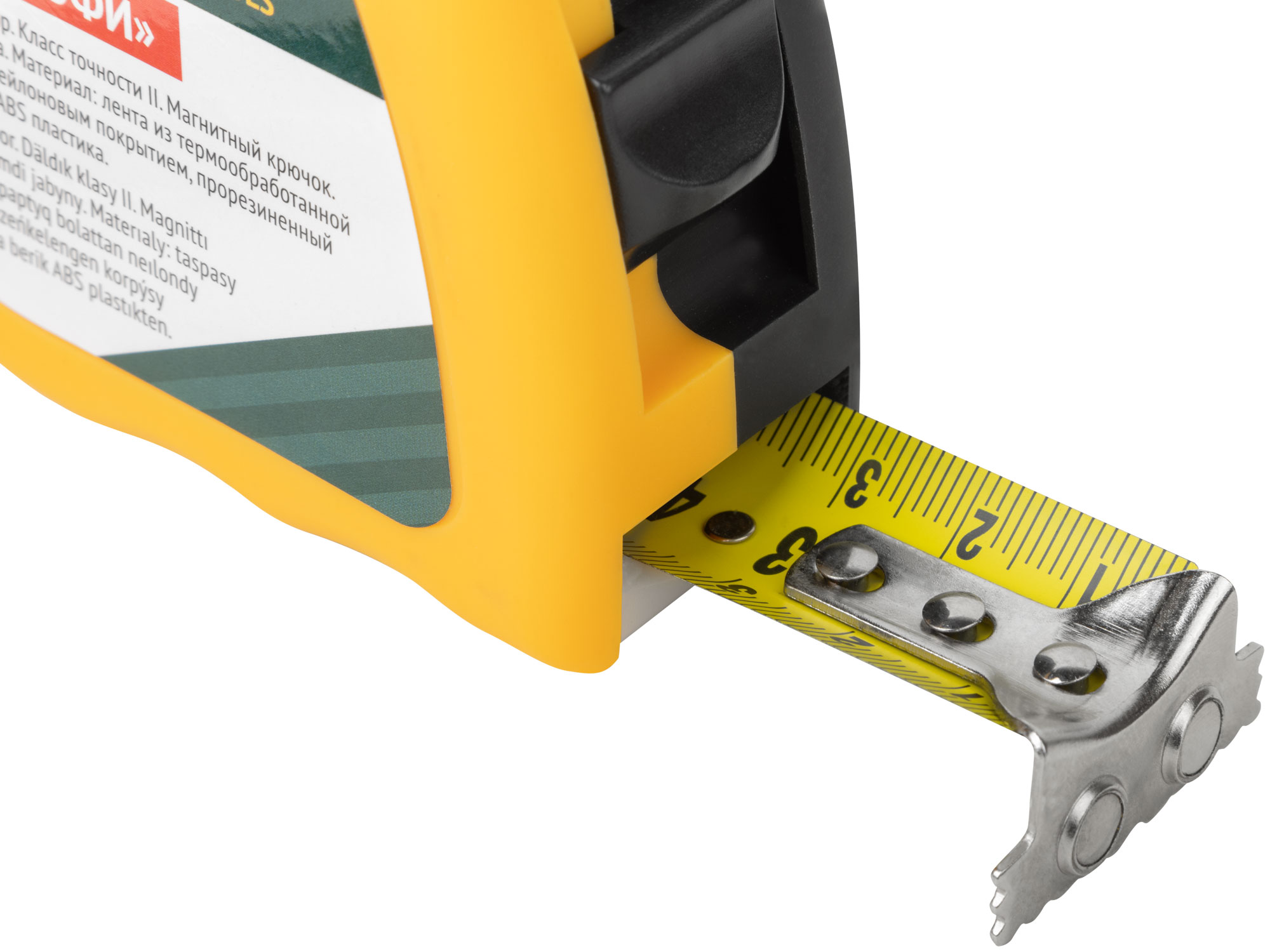 Среди преимуществ рулетки — долговечность и удобство использования. Магнитный крючок позволяет работать без помощи второй руки, а двойной стопор фиксирует ленту в нужном положении, предотвращая случайные изменения длины.