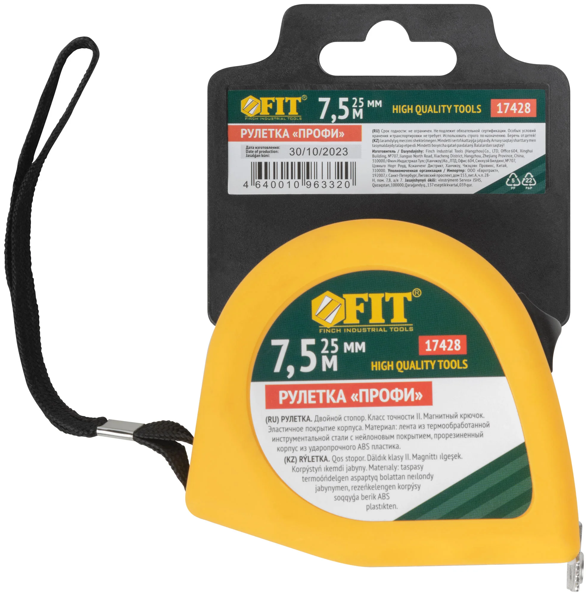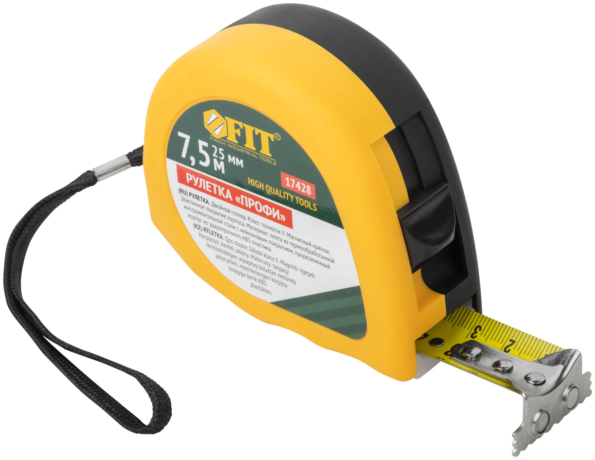 Рулетка FIT, длиной 7,5 метров и шириной 25 мм, идеально подходит для использования на стройплощадке и в мастерской. С её помощью вы сможете легко и точно измерять длину и ширину различных поверхностей и объектов.