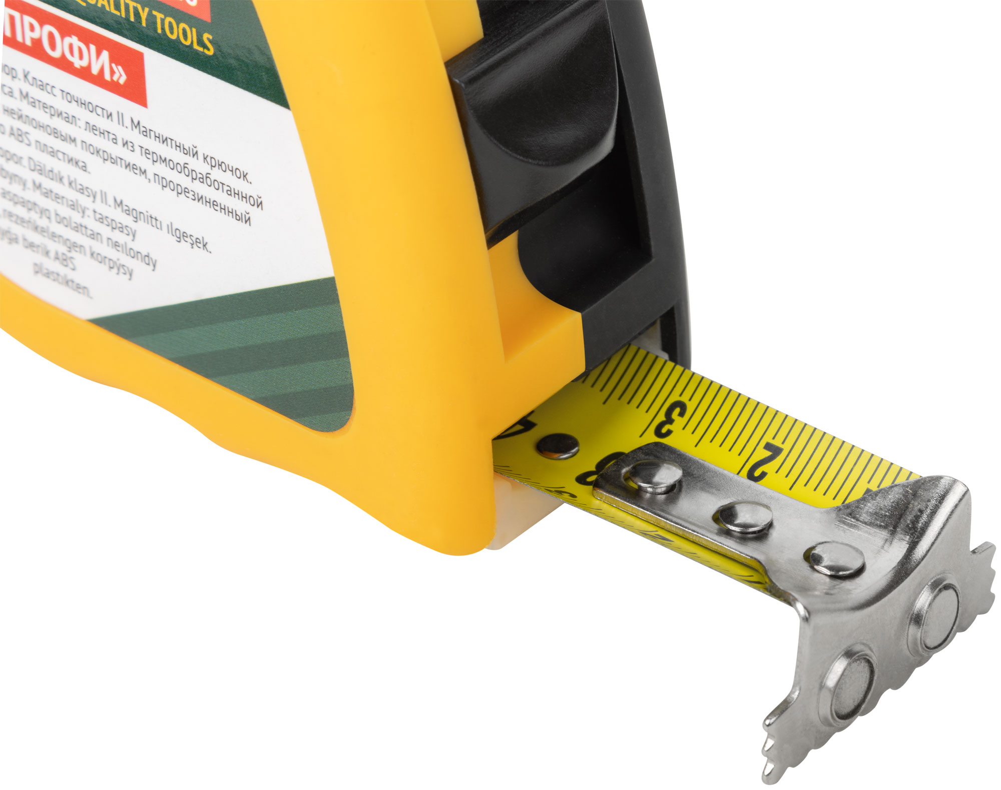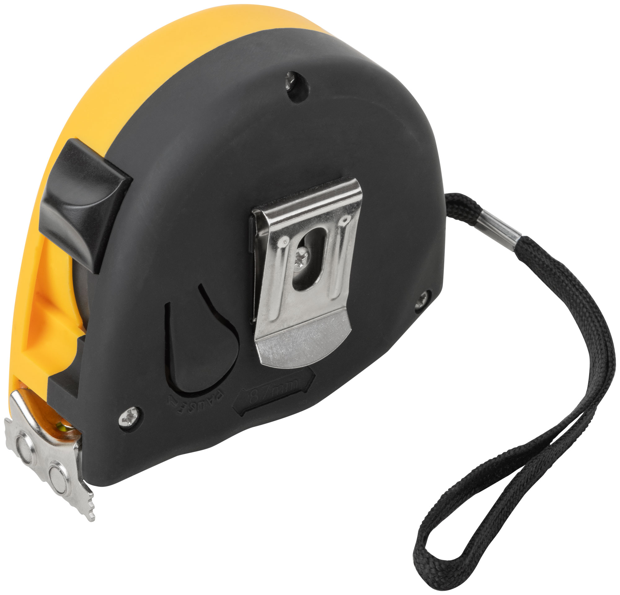 Эластичный корпус из двухцветного ABS пластика защищает рулетку от ударов и повреждений, а двойной стопор гарантирует надёжную фиксацию ленты в нужной позиции.