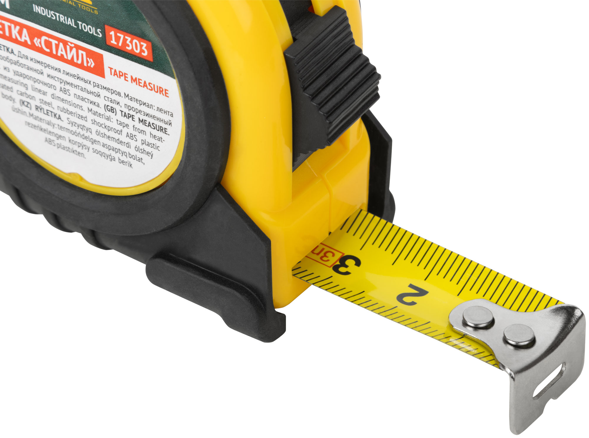 Прорезиненный корпус из ABS пластика обеспечивает надежный захват и защищает рулетку от ударов. Стальная лента с четкой разметкой позволяет быстро и удобно выполнять измерения даже в условиях слабого освещения.
