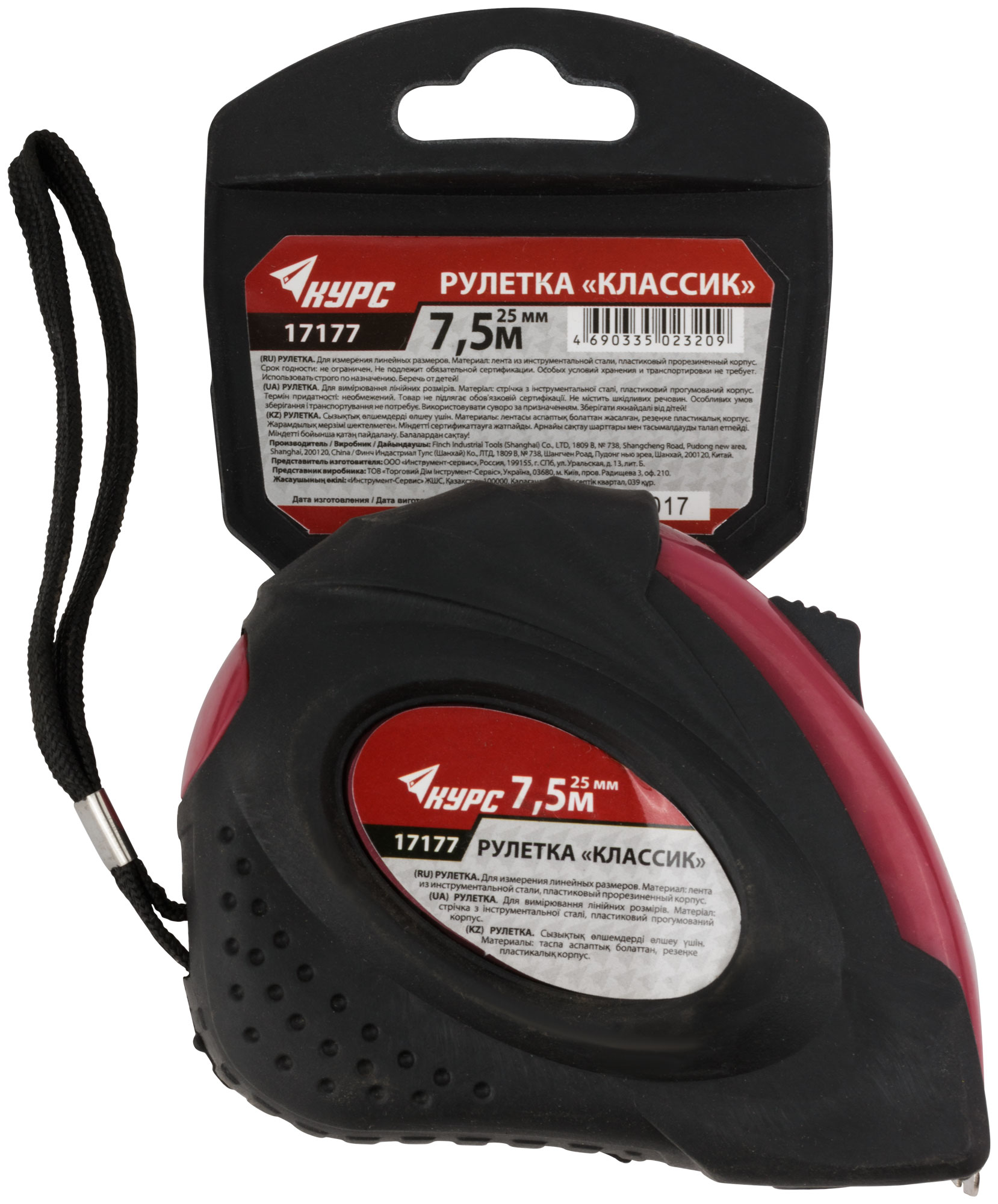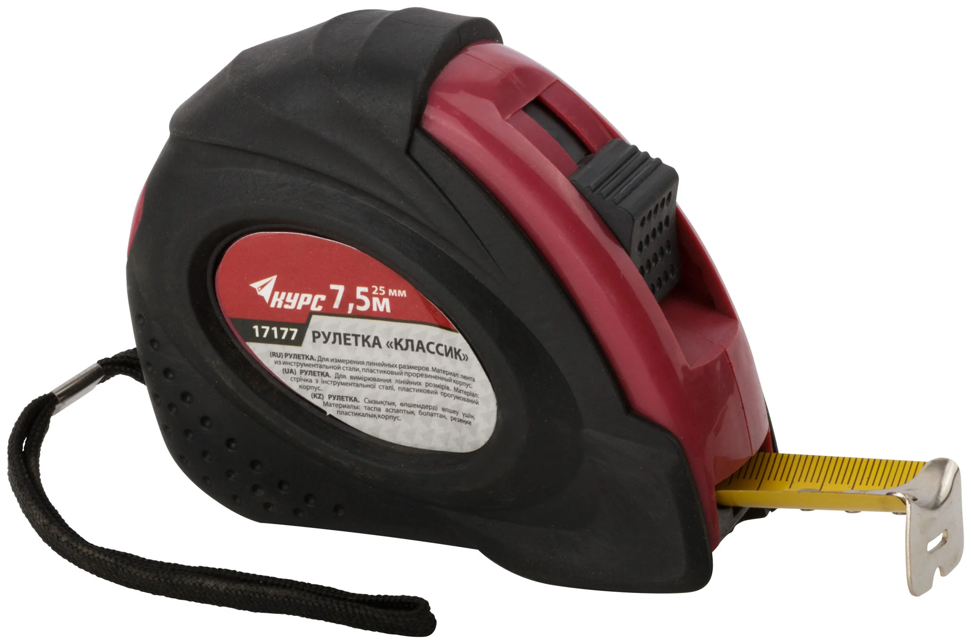 Рулетка "Классик" от бренда КУРС сочетает в себе прочность и практичность, необходимую для профессиональных строителей и мастеров. Стальная лента и удобная упаковка с пластиковым подвесом делают её незаменимой в работе.