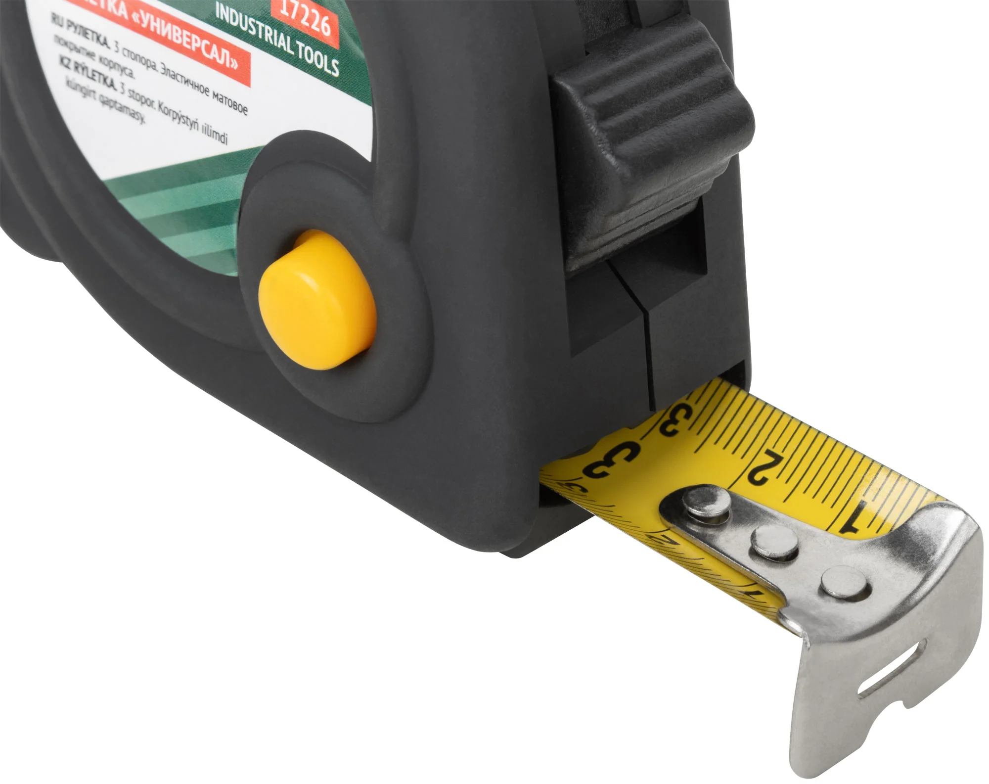 Рулетка 5 м x 25 мм с прорезиненным корпусом и тройным стопором