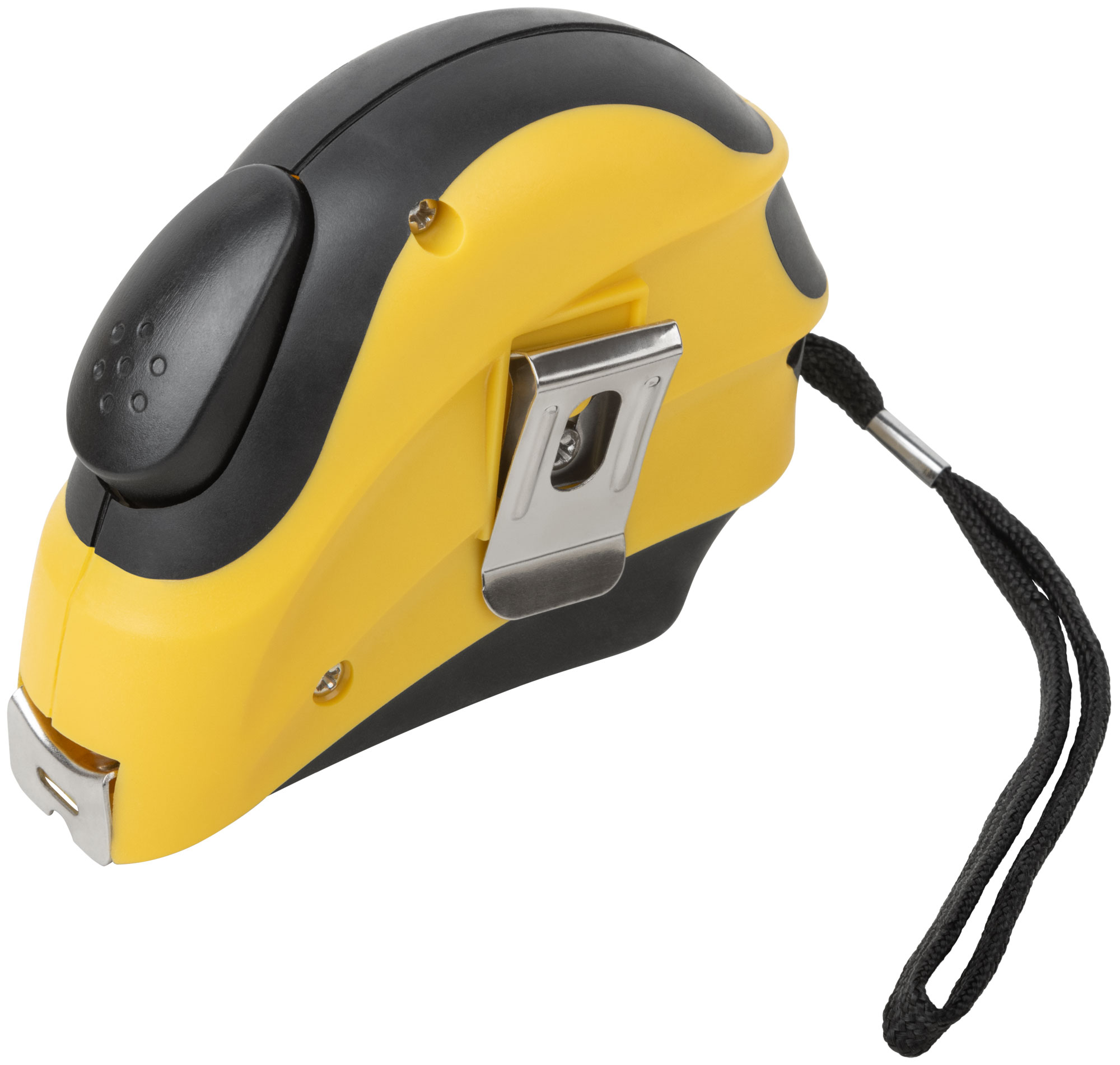 Корпус рулетки выполнен из ABS пластика с резиновыми вставками, что делает его устойчивым к падениям и ударам. Стальная лента шириной 19 мм обеспечивает надежность и долговечность при частом использовании. Компактные размеры 140x90x40 мм позволяют удобно носить рулетку в кармане или на поясе.