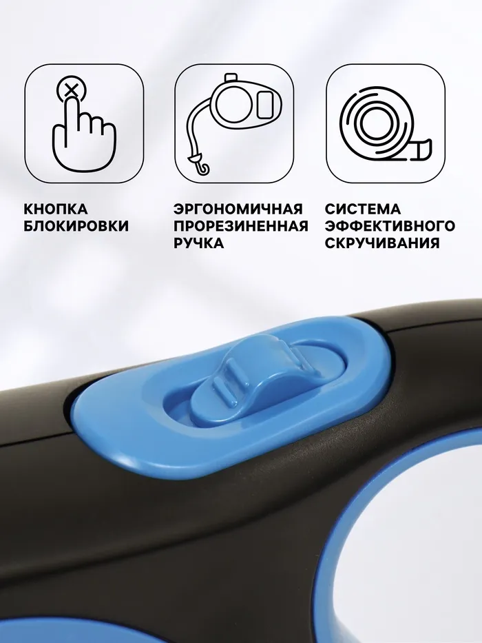 Рулетка с системой эффективного скручивания поводка для безопасной прогулки с вашим питомцем.
