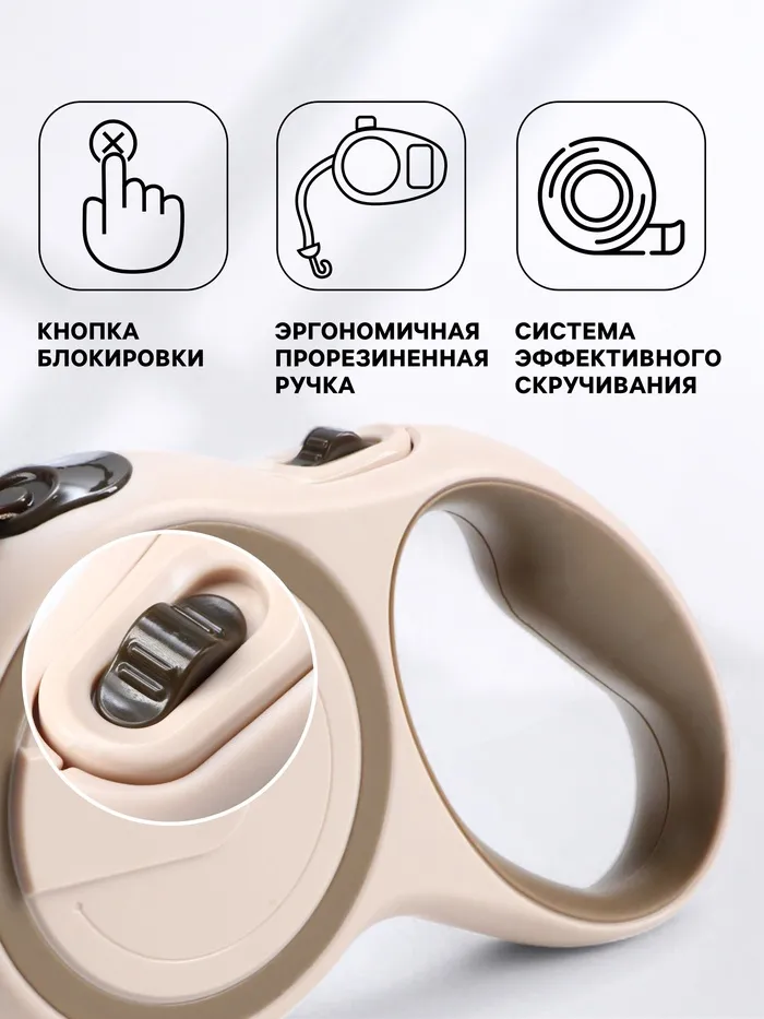 Рулетка с системой эффективного скручивания поводка для безопасной прогулки с вашим питомцем.
