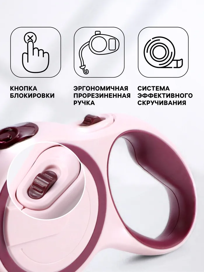 Рулетка с системой эффективного скручивания поводка для безопасной прогулки с вашим питомцем.