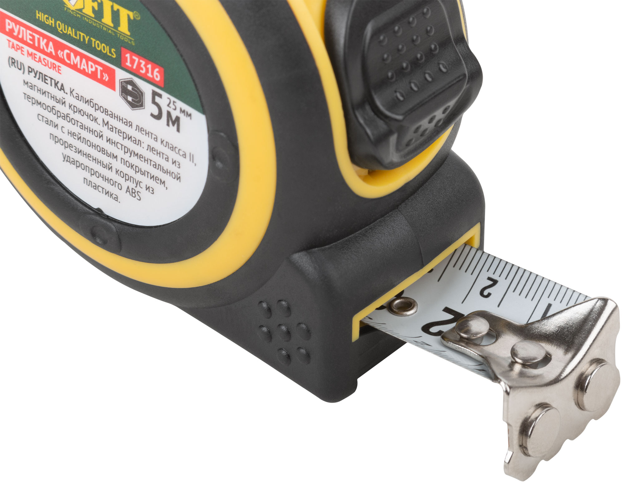 Рулетка FIT "Смарт" станет незаменимым инструментом для мастеров, прорабов и закупщиков. Она позволяет быстро и удобно измерять расстояния до 5 метров, что особенно полезно при строительстве и ремонте.
